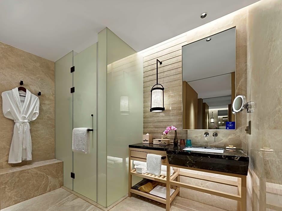 Three on-site dining venues offer a flavorful tour for every mood. 厨艺全日餐厅, a modern, romantic all-day dining room, serves Asian and European favorites to fuel daytime adventures. 青雅中餐厅 presents Chinese and local cuisines in a family-friendly, traditional setting. 丼特色餐厅 focuses on Japanese dishes with family-friendly, modern, and romantic vibes.